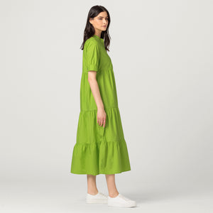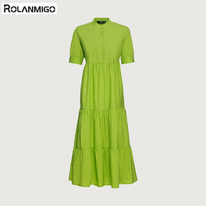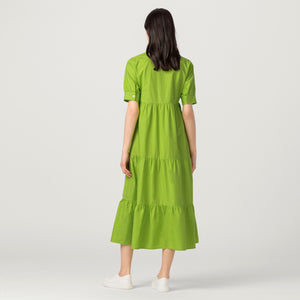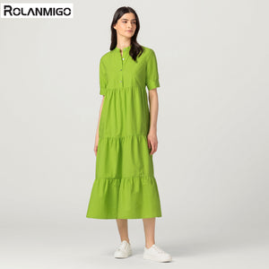 weites Midikleid aus Baumwollpopeline mit Perlmuttknöpfen